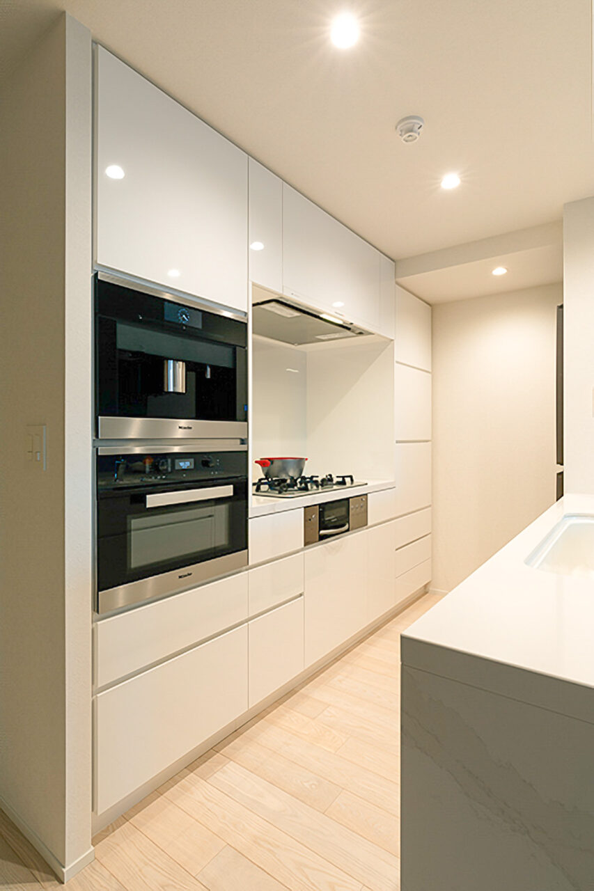 Since I own quite a lot of things, maximizing storage was essential. Within the limited space, they managed to conceal all the household appliances while also building in a Miele dishwasher, oven, and even an espresso machine—yet still secured ample storage capacity. Honestly, I was amazed!