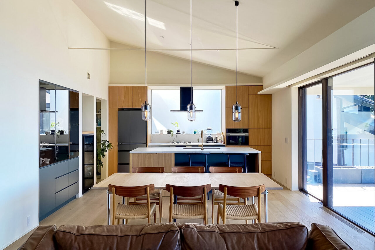 If we had to say one thing, we originally planned to decorate the open shelf above the wine cellar with flowers. But with three cats, they keep jumping up from the island, so flowers aren’t practical (laughs).