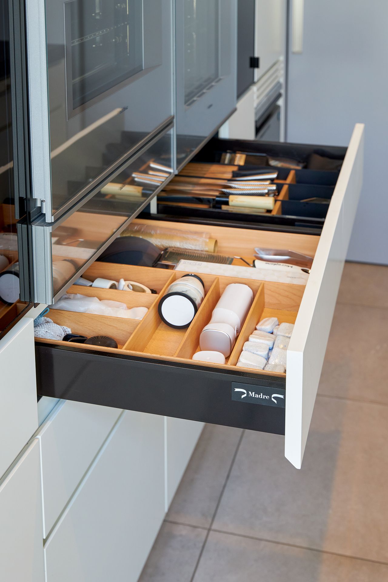 We created the island kitchen and back set, with all cooking appliances unified by GAGGENAU. As the homeowner expressed, “We designed the house with the kitchen at its heart,” the result is a striking kitchen that feels like a stage for cooking. An interview with the homeowner is also featured.